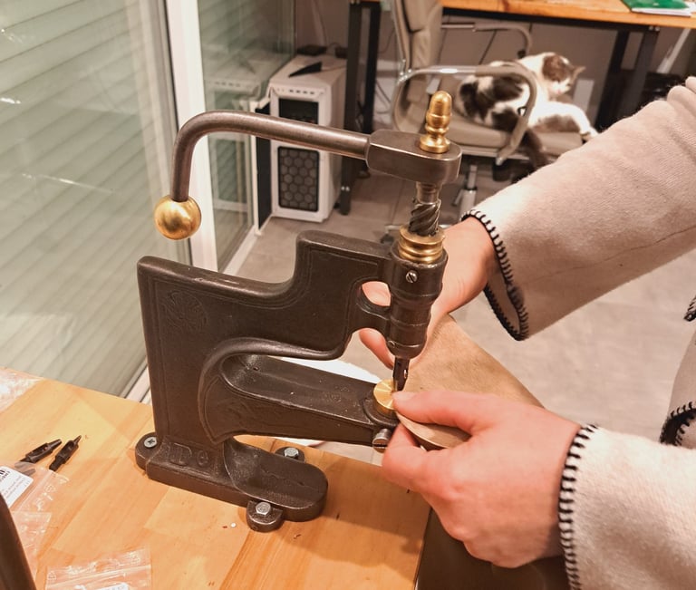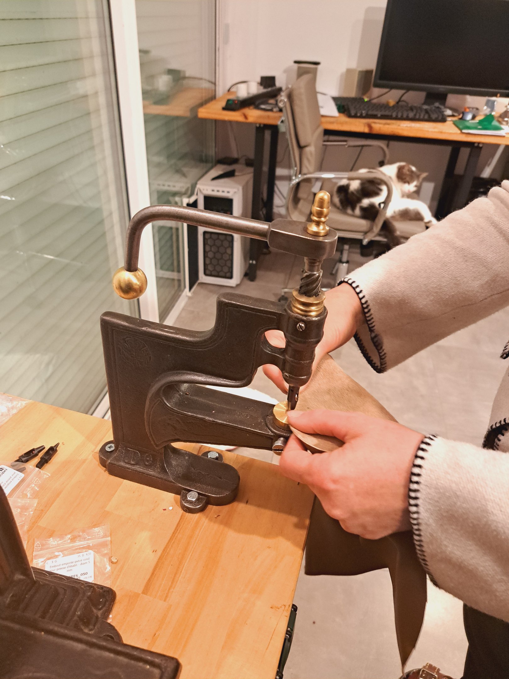 Je travaille le cuir de façon artisanale. Toutes mes créations sont entièrement réalisées à la main dans mon atelier sur la Côte d'Azur et sont sans coutures. Je mêle des techniques ancestrales de travail du cuir en utilisant des outils plus que centenaires (une très ancienne presse manuelle en fonte par exemple) et des technologies modernes telles que la CAO et l'impression 3D afin de créer mes propres motifs d'impression. Les cuirs bruts à partir desquels je découpe et crée mes pièces, sont des cuirs naturels tannage végétal provenant de tanneries européennes. J'ai également créé une gamme « nature » pour laquelle j'utilise des jus de fruits et de légumes pour teindre le cuir.
